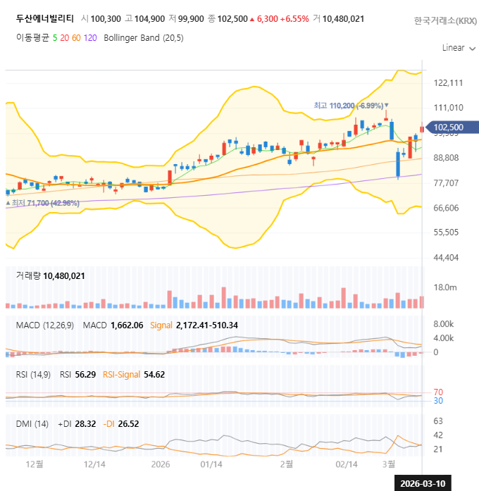 펀더멘탈과 기술적 분석을 종합했을 때, 두산에너빌리티는 '성장판이 다시 열리는 시점'에 있습니다. 목표주가 113,000원까지의 상승 여력은 약 10% 이상 열려 있으며, SMR 시장의 가시화가 빨라진다면 밸류에이션 리레이팅까지 기대할 수 있는 상황입니다.